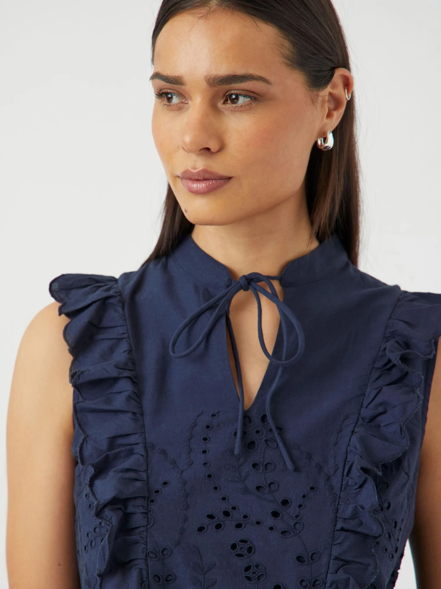 Dit item is gemaakt van een delicaat materiaal met broderie anglaise en bevat prachtige borduringen.