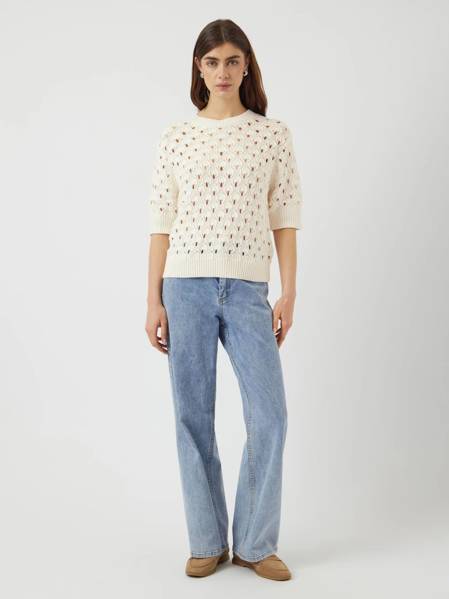 – Mouwen: halflange mouwen